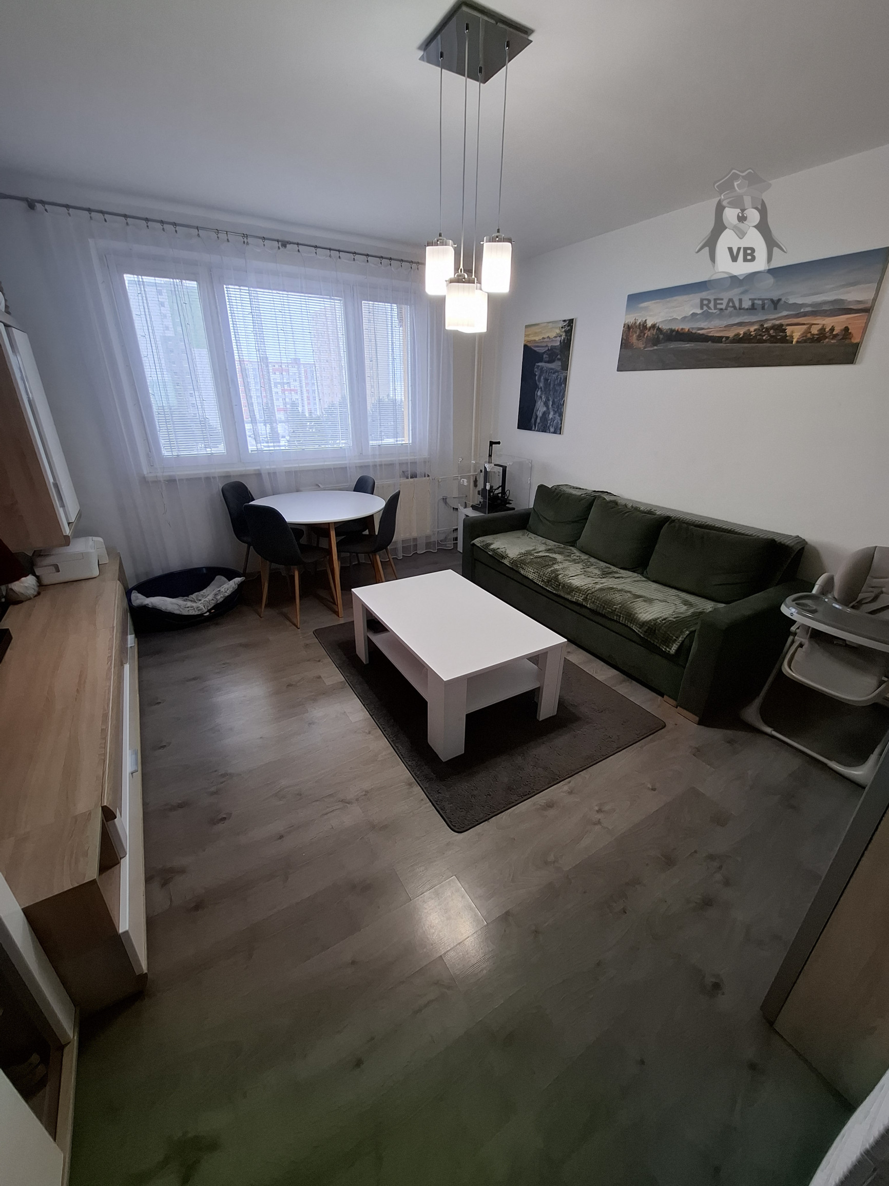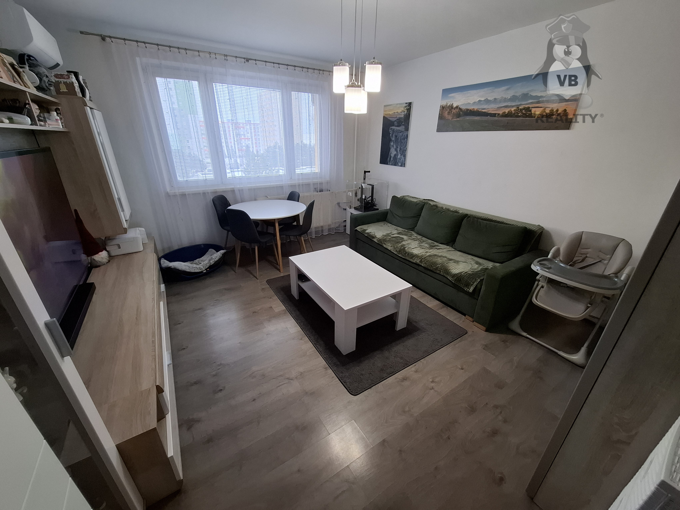 Byt je orientovaný na svetové strany (Juh, Sever), je dostatočne presvetlený, slnečný a teplý. Z okien sú pekné výhľady na zeleň a tatry. Ďalšou výhodou je, že v blízkosti bytového domu je veľmi dobrá občianska vybavenosť. Škola, škôlka, menšie zdravotné stredisko, potraviny, autobusová zastávka atď. K bytu prislúcha aj jedna pivnica a spoločné odkladacie priestory. Bytovka je vybavená kamerovým systémom a novými výťahmi.