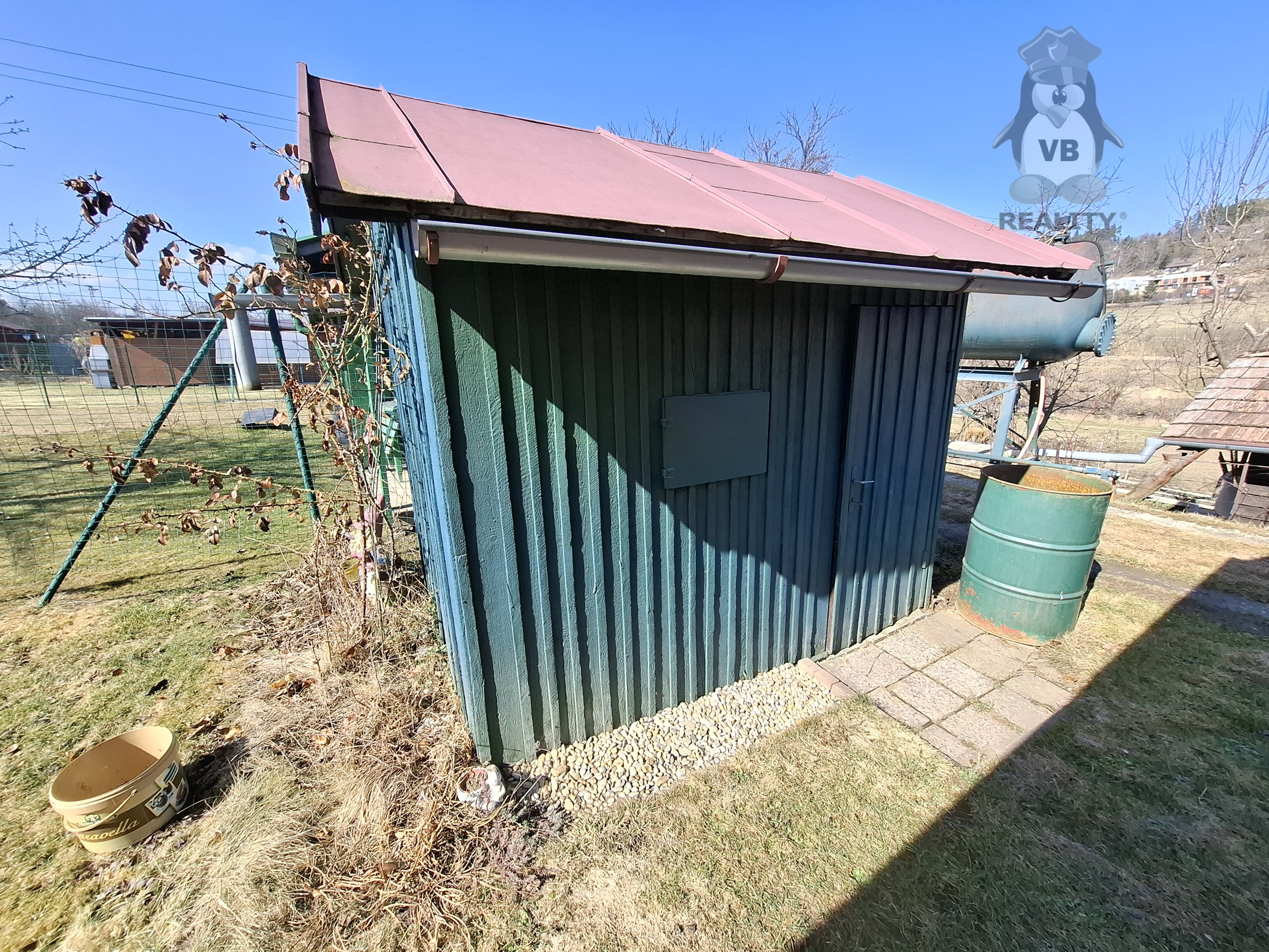 · plechová búda na náradie (s podpivničením)